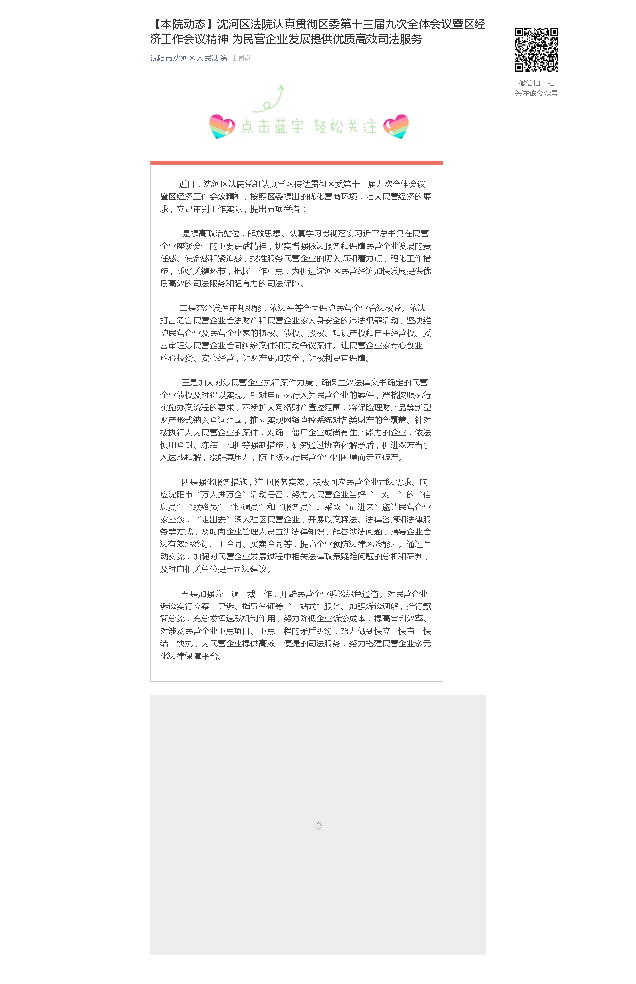 沈河区法院认真贯彻区委第十三届九次全体会议暨区经济工作会议精神 为民营企业发展提供优质高效司法服务