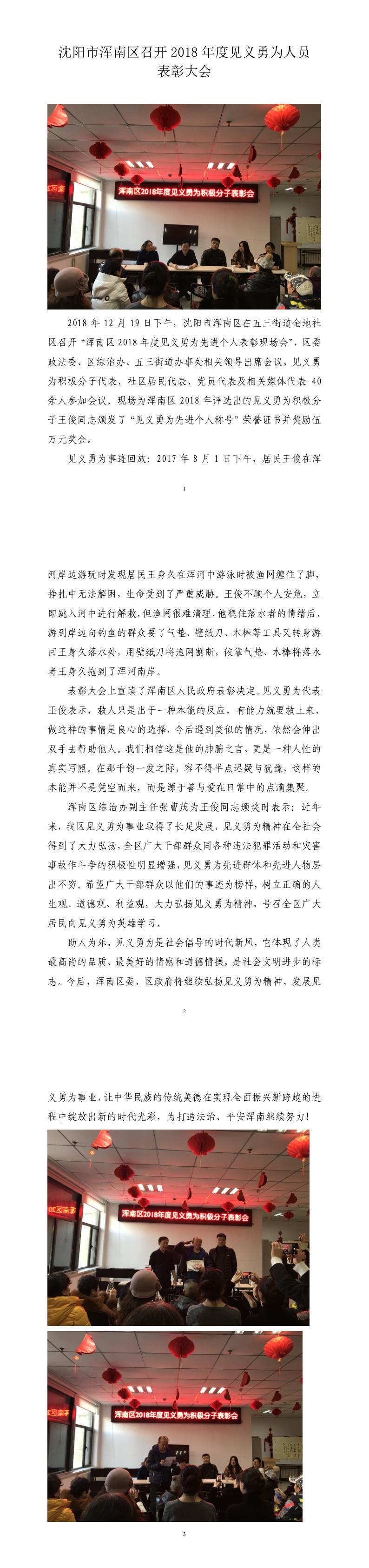 沈阳市浑南区召开2018年度见义勇为人员表彰大会